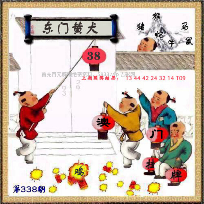 338期正版彩图挂牌:挂:38 爆:鸡 挂牌成语:东门黄犬 挂牌出肖:猪猴鼠蛇马牛